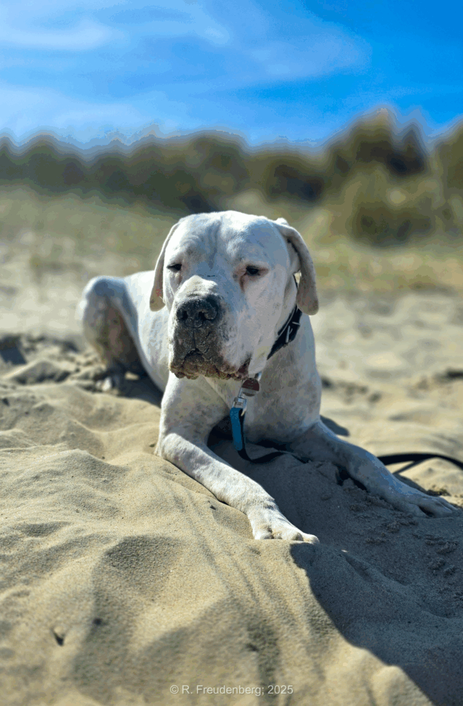 Nach der ersten Woche sind wir dann in unser eigentliches Domizil umgezogen. Auch hier war der Strand nicht weit. Jeden Morgen und jeden Abend ging es an den Strand vom Grevelingenmeer. Tagsüber dann auch gerne an den Nordseestrand. Einfach nur schön und super entspannend. Weite Strände mit sehr wenig Betrieb. So konnten wir gut entspannen. Chico konnte ungestört über den Strand toben, obwohl er schon fast zum Seehund mutiert ist. Er ließ sich keine Gelegenheit entgehen, um ins Wasser zu laufen und eine Runde zu schwimmen.